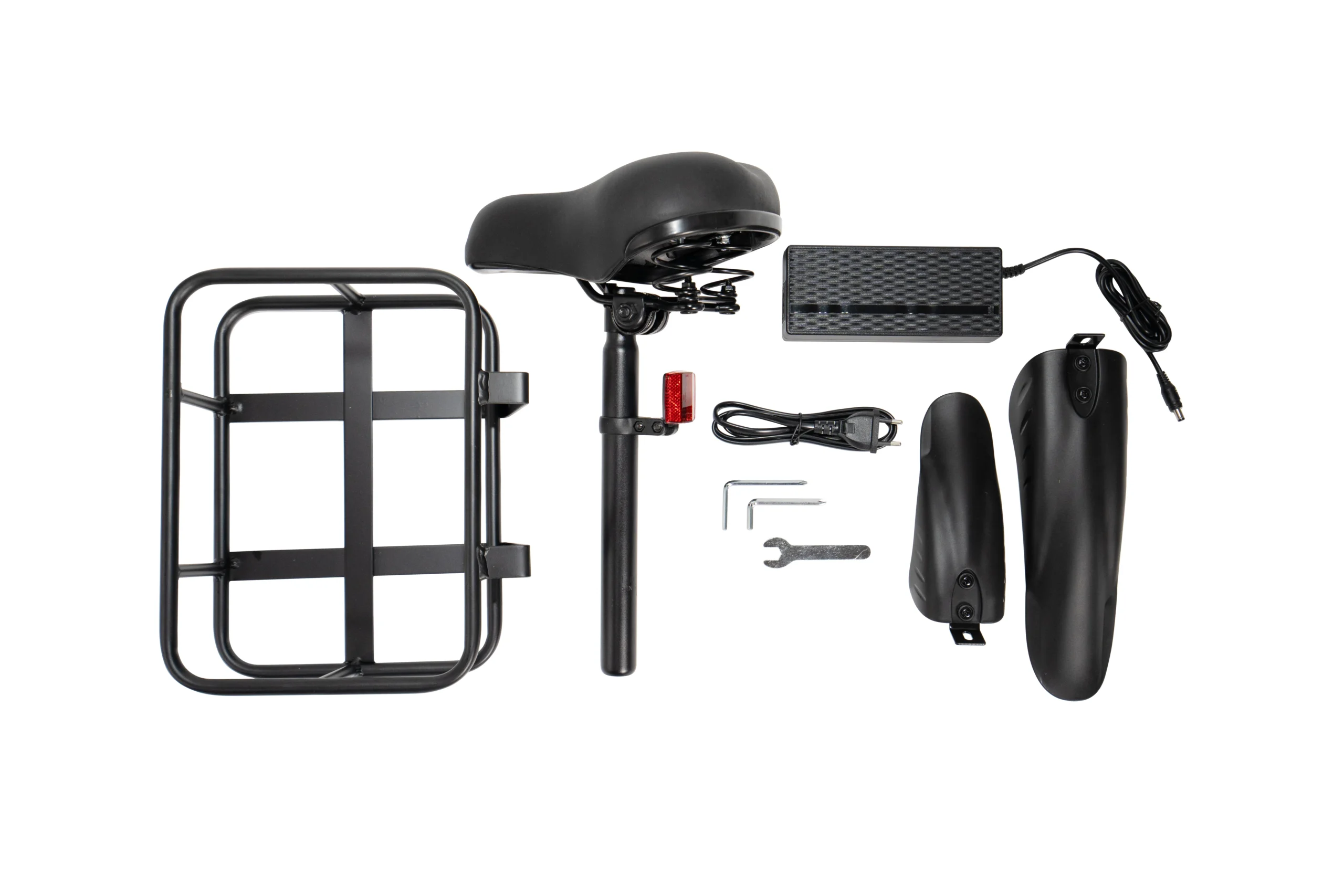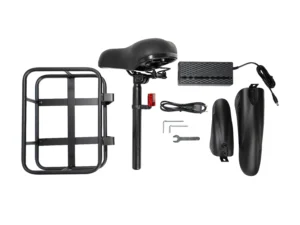 | Pakuotės turinys | 1x elektrinis paspirtukas 1 x įrankių rinkinys 1 x rankinis 1x sėdynė 1x pakrovėjas 2x sparnas 1 x Krepšelis |