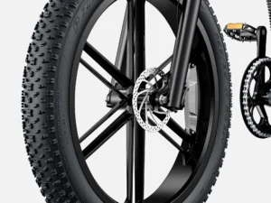 | Pagrindinė | Didžiausias greitis: 50 km/val Variklio galia: 1000W (didžiausia 1200W) Maksimalus laipiojimo kampas: 30 laipsnių Padangos: 26*4,0 colio Atstumas vienu įkrovimu: 100 km; 62 mylios Akumuliatoriaus talpa: 48V 19,2Ah (pagrindinis akumuliatorius), 10Ah (antrinis) Pavaros: Shimano 8 greičių Priekinė šakė: Alyvos spyruoklės magnio kojelės, 180 mm eiga Stabdžiai: hidrauliniai diskiniai stabdžiai Pagreitis: 46 s (0–50 km/h) Įkrovimo laikas: 7 valandos Priekinis apšvietimas: 48V 12W LED Apkrova: 150kg |